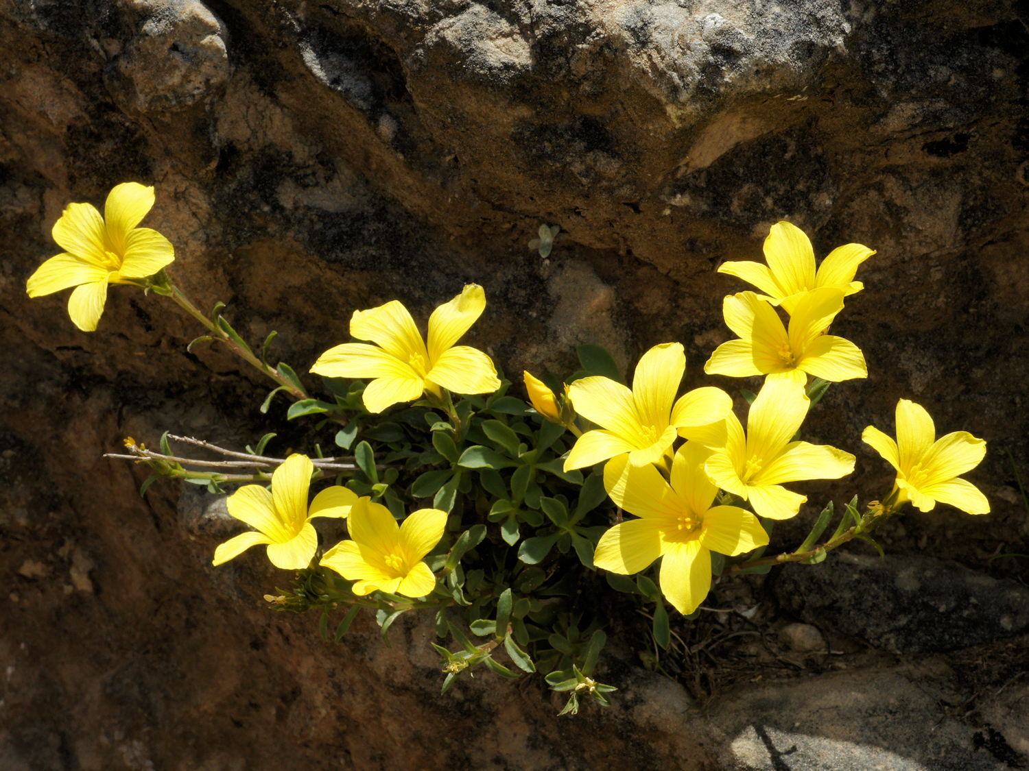 - fleurs jaunes, grandes, de 3 cm de long, subsessiles, en cymes corymbiformes