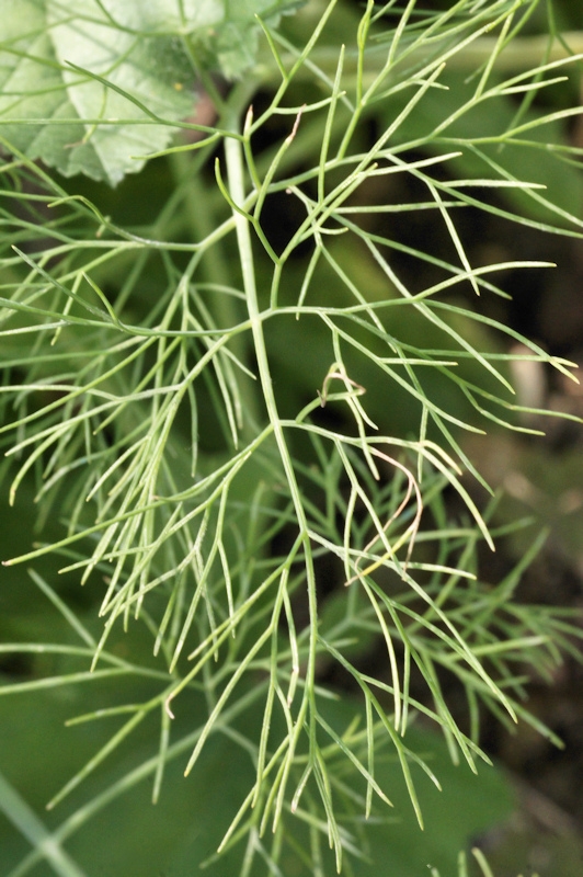 - feuilles tripennatiséquées, à lanières filiformes, allongées, divariquées, les supérieures réduites à la gaine dilatée