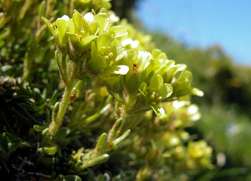 - Plante vivace do 3-10 cm, poilue-glanduleuse, à souche sous-ligneuse, densément gazonnante, les anciennes feuilles dressées en colonnes cylindriques