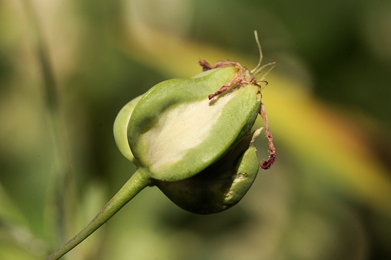 - calice ovoïde-pyramidal, non ombiliqué, à 5 angles verts et ailés, à dents triangulaires-acuminées